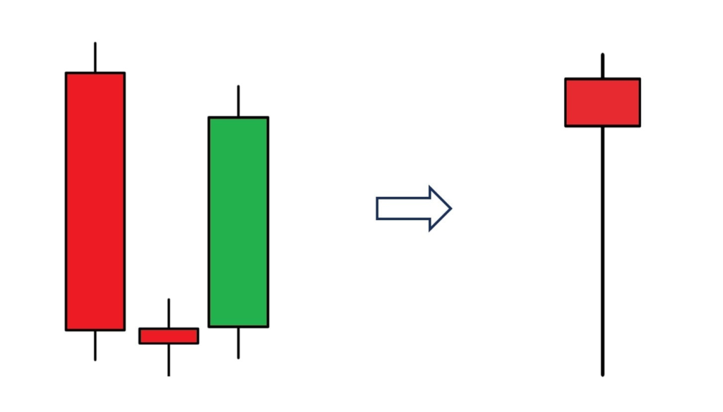 A hammer is a candlestick pattern that forms when the opening and closing prices are near the top of the candlestick’s range, and there is a long lower wick. The hammer pattern can indicate a potential reversal in a downtrend, as buyers have stepped in and pushed the price up from its lows.