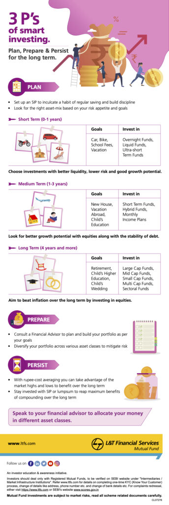 To help the investor choose the right product, L&T Mutual Fund offers various investment calculators. Through these calculators, the investor can check the amount of investment required to meet future goals. For example, if you want to build a corpus of ₹ 1 crore for your retirement needs. You still have 15 years more to go for retirement. So the calculator will tell you exactly how much amount of SIP you need to start in order to meet your future goal.
