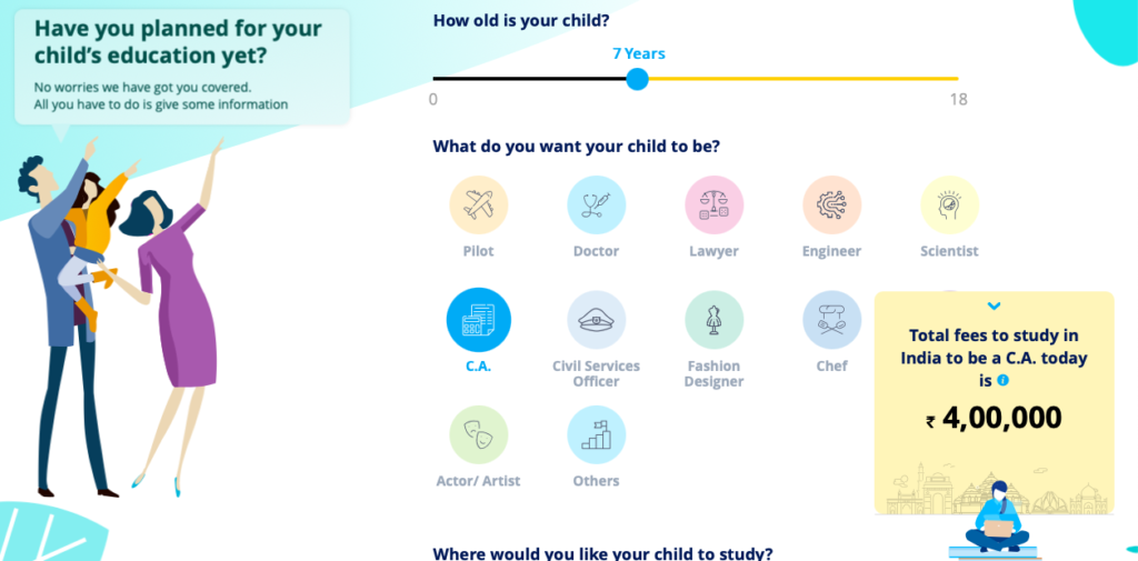 This calculator will give you the magical figure that you as a parent need to shell out when your child will go for higher education.